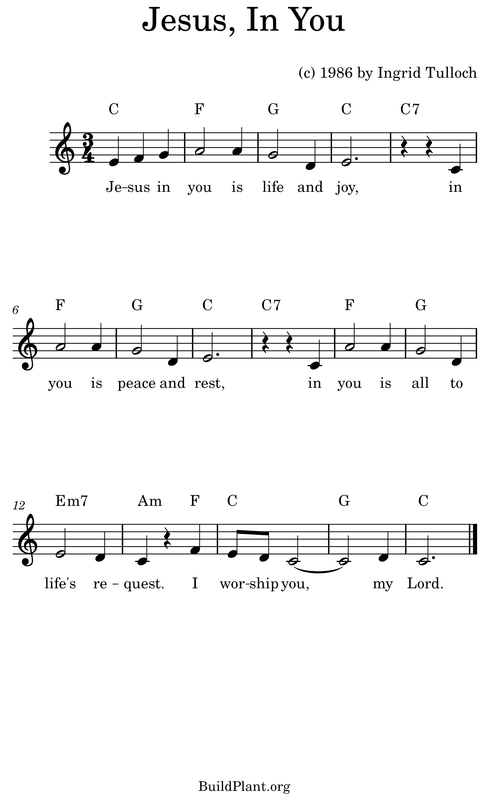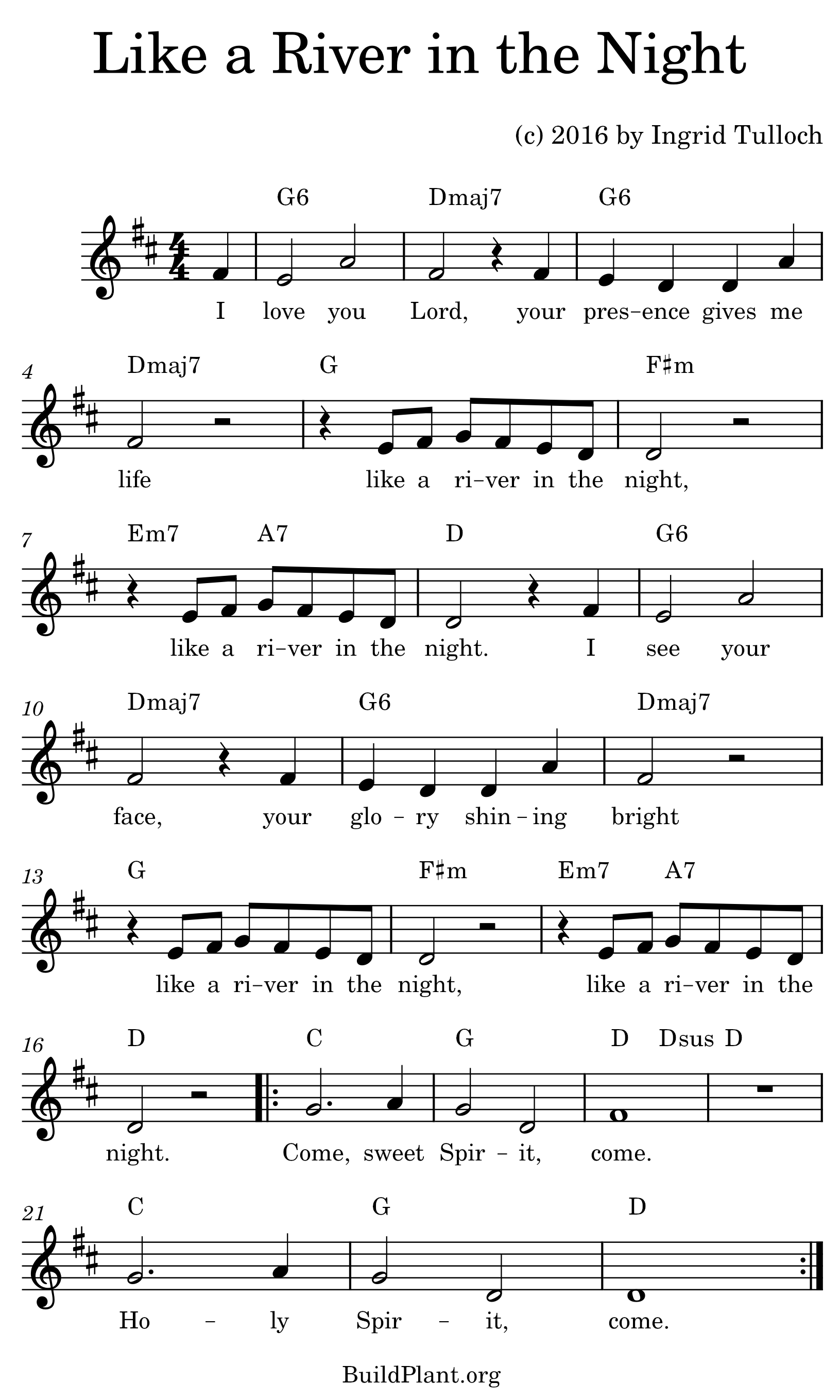 Another fairly recent song by Ingrid, sweet and intimate and very easy to learn. Ingrid shares that "This song came to me in the night during a time when we were very busy writing books for Microsoft. It was a challenging time in our life together. I think the Holy Spirit gave it to me to encourage me, to show me that His presence was still with us during this difficult time."